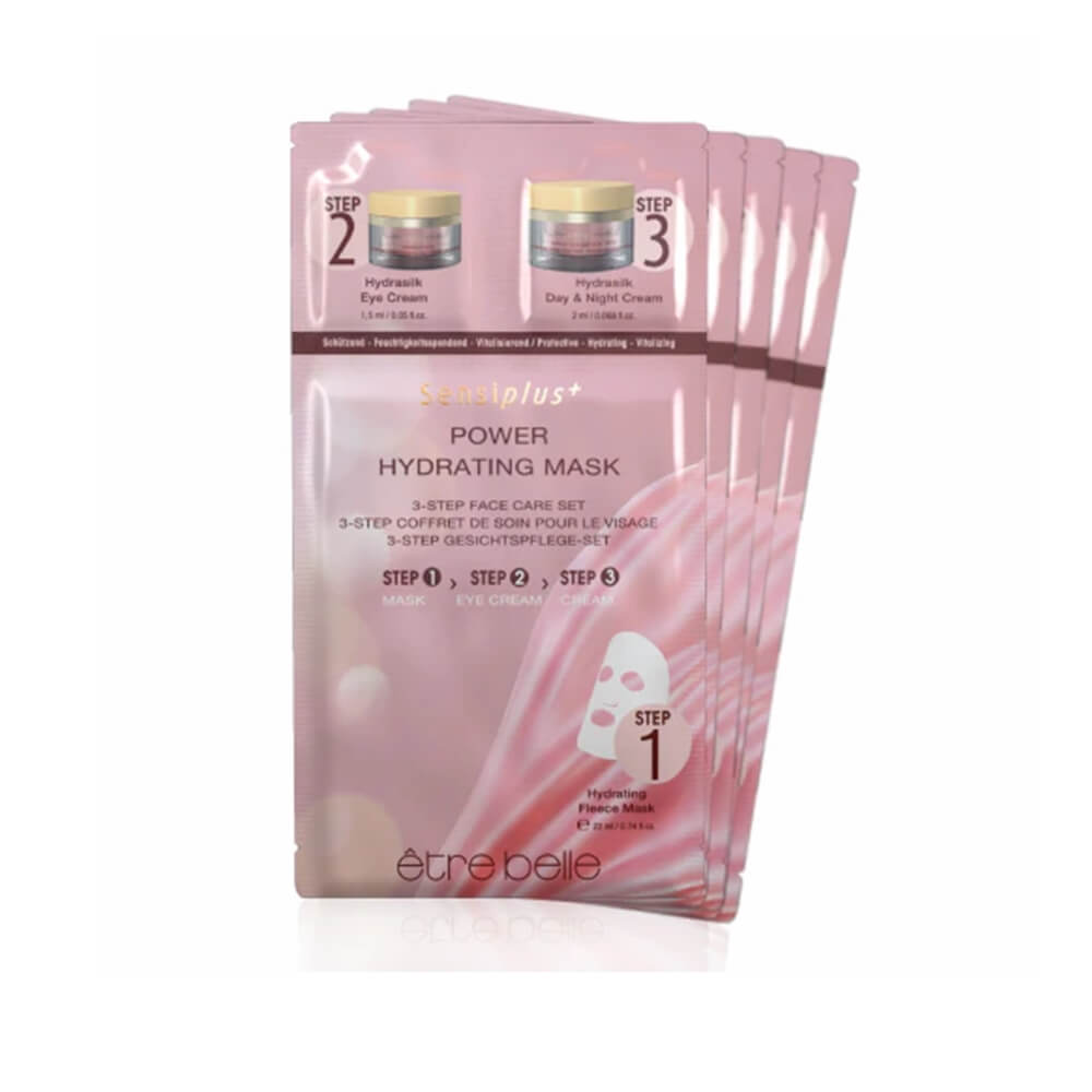 Die Sensiplus Power Hydrating Mask schützt die sensible Haut, spendet Feuchtigkeit und wirkt vitalisierend. Das Gesichtspflege Set enthält eine feuchtigkeitsspendende Vliesmaske, die Sensiplus Hydrasilk Augencreme und die Hydrasilk Tag & Nacht Creme.